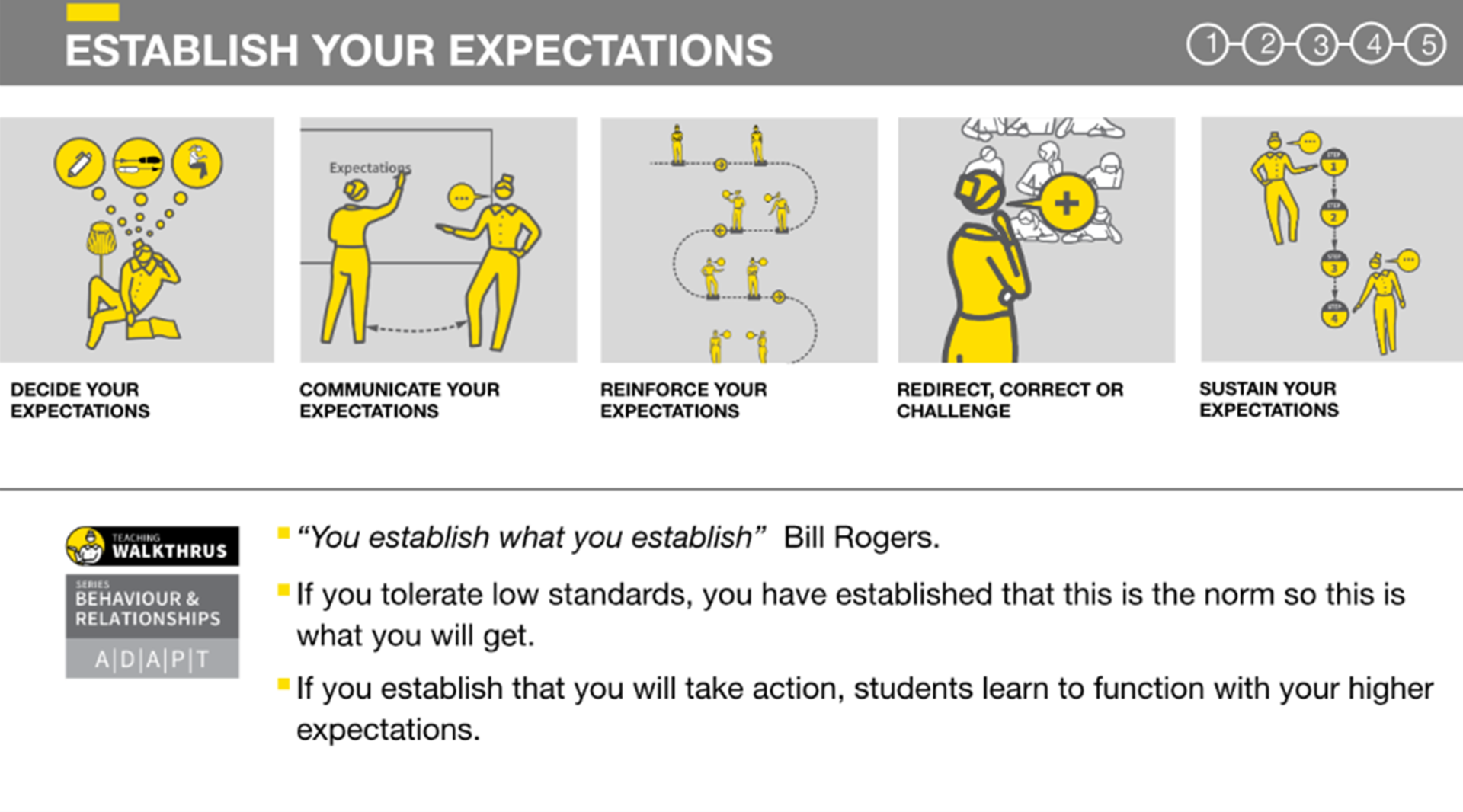 If children are going to follow our expectations automatically we need to rehearse them many times. We may also need to revisit the routines and re-practice if they begin to slip (beware of enforcement fatigue). We first need to establish with the children what our expectations are; we can then use WALKTHRUs like ‘Signal, Pause, Insist’ to reinforce and ensure all children understand this is a routine that we expect them to follow.