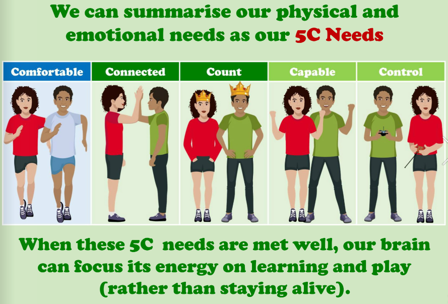 Through adult support, the children develop understanding of their 5C needs and how it feels to have these met and unmet. We cannot have all our needs met all of the time and so we need to develop the skills to manage this.