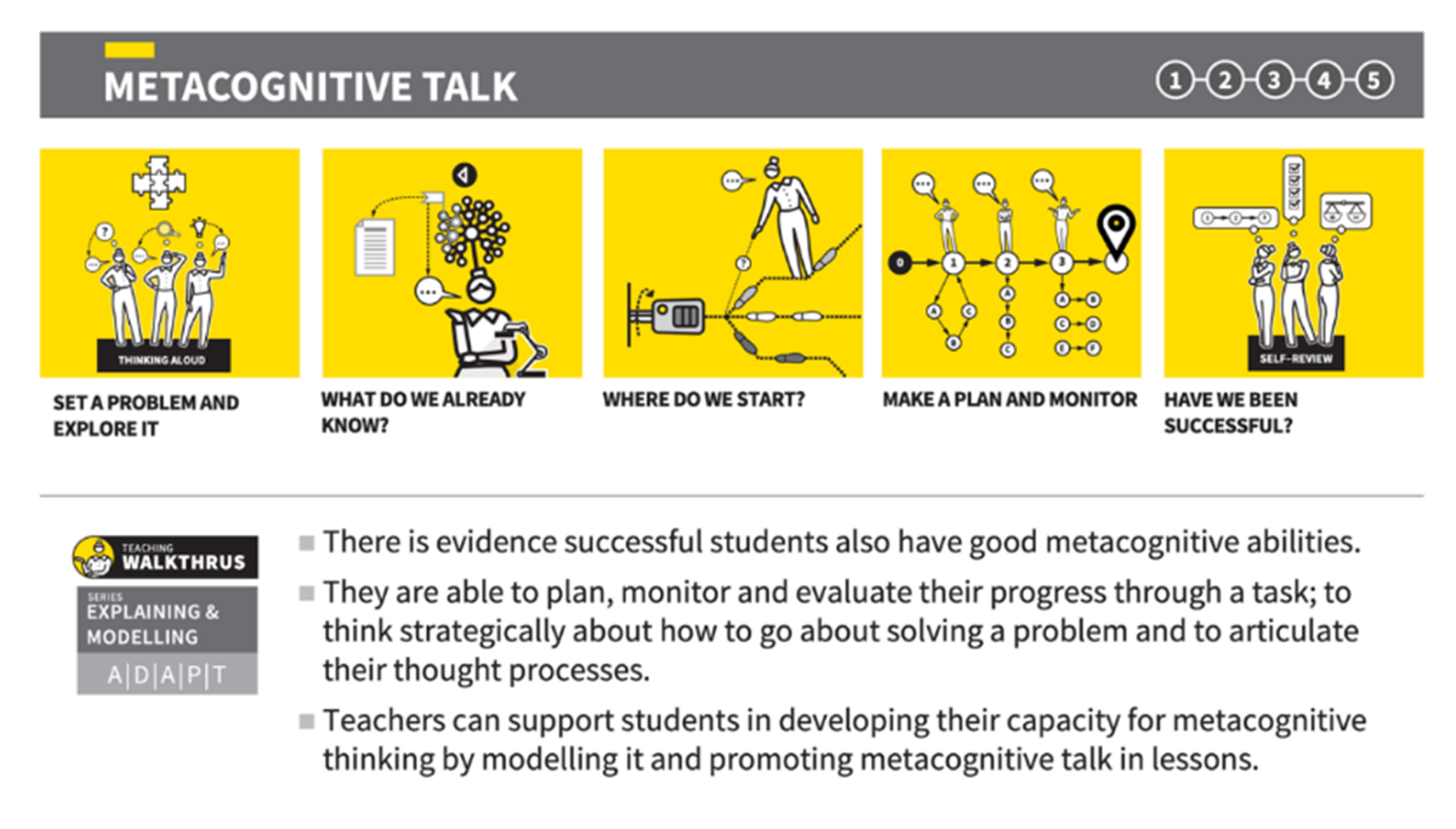 Metacognitive Talk ties in with other WALKTHRUs we use, including Process Questions, Check for understanding and Live Modelling. Metacognitive Talk will support children greatly in being able to successfully complete independent practice.