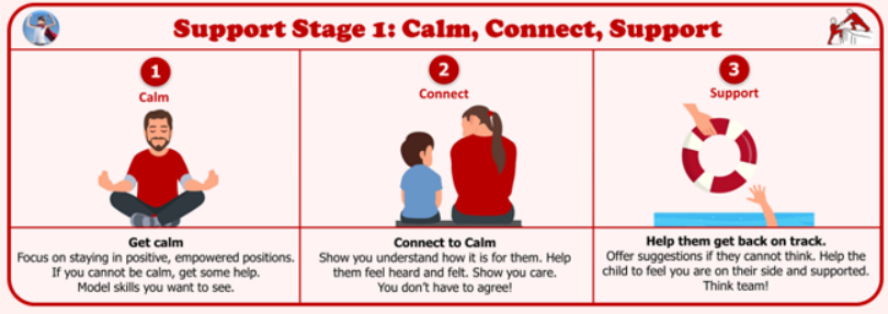 If children cannot meet the high expectations, they might need support to develop the skills to do this. We know that children need to connect to calm before they can reflect and repair.